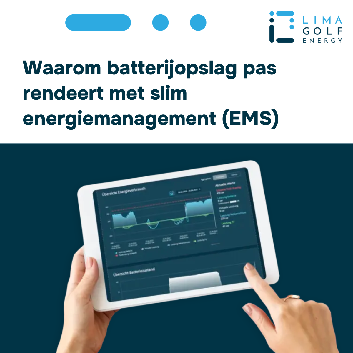 Met het juiste inzicht komt u verder. LimaGolf Energy geeft bedrijven grip en groeiruimte. Met batterijopslag, een slim energiemanagementsysteem (EMS) en strategisch advies maken we uw energie-infrastructuur toekomstbestendig.