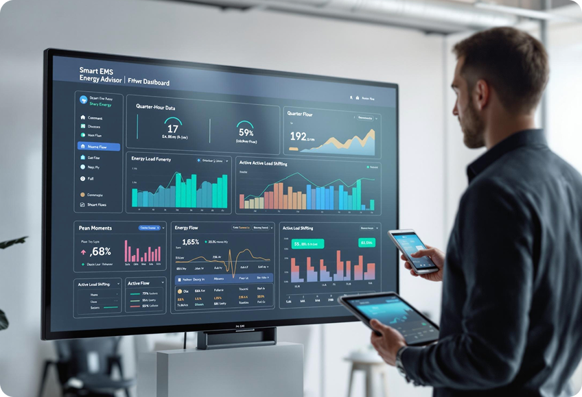 Ons energiemanagementsysteem (EMS) geeft realtime inzicht in uw verbruik, pieken en kansen. Van analyse tot aansturing: dit is het brein achter slimme energie. Integreer, optimaliseer en stuur bij, volledig afgestemd op uw bedrijf.